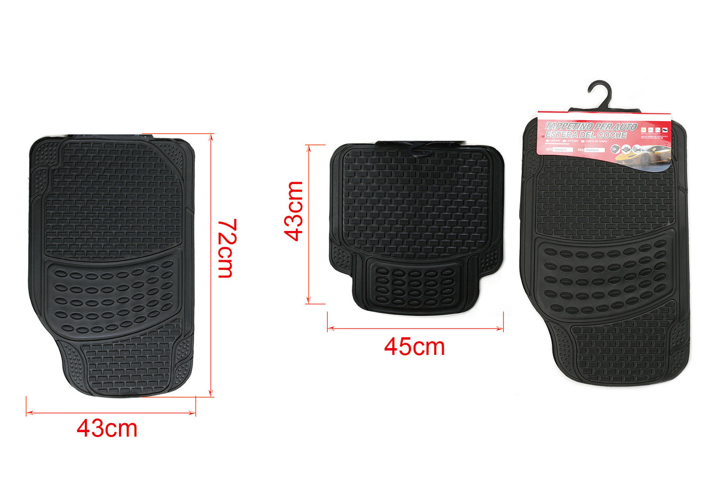 Kit Tappetini Auto In Gomma Universale Anteriori 72X43cm Posteriori 45X43cm