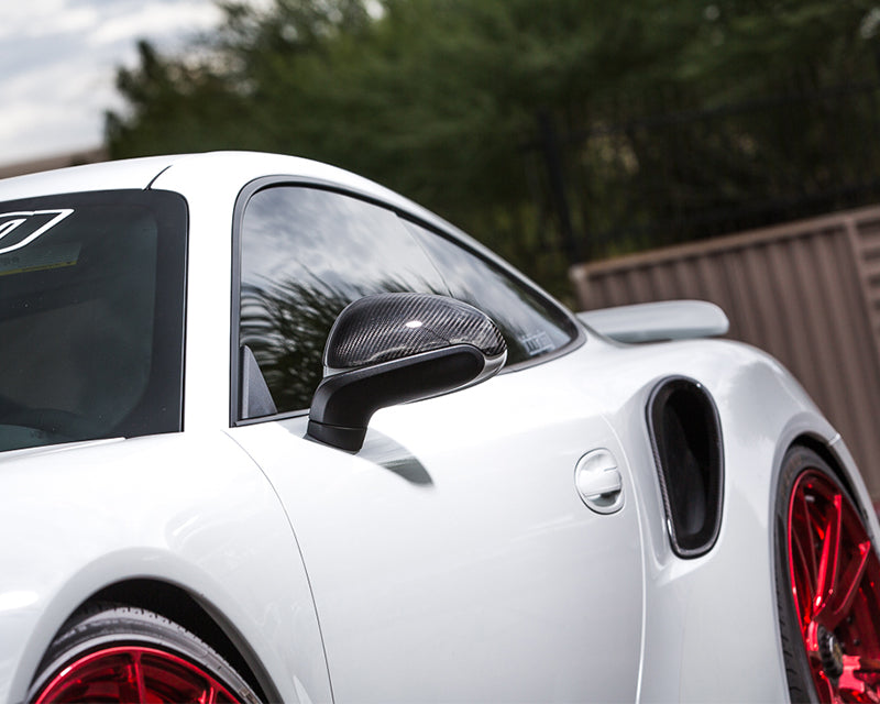VR Aero now has these stylish carbon fiber side air ducts that fit over the Porsche 991 turbo stock pieces. The side air ducts are finished in a 2x2 carbon weave with a high gloss clear coat. Carbon fiber has always been a stylish addition to any vehicle.